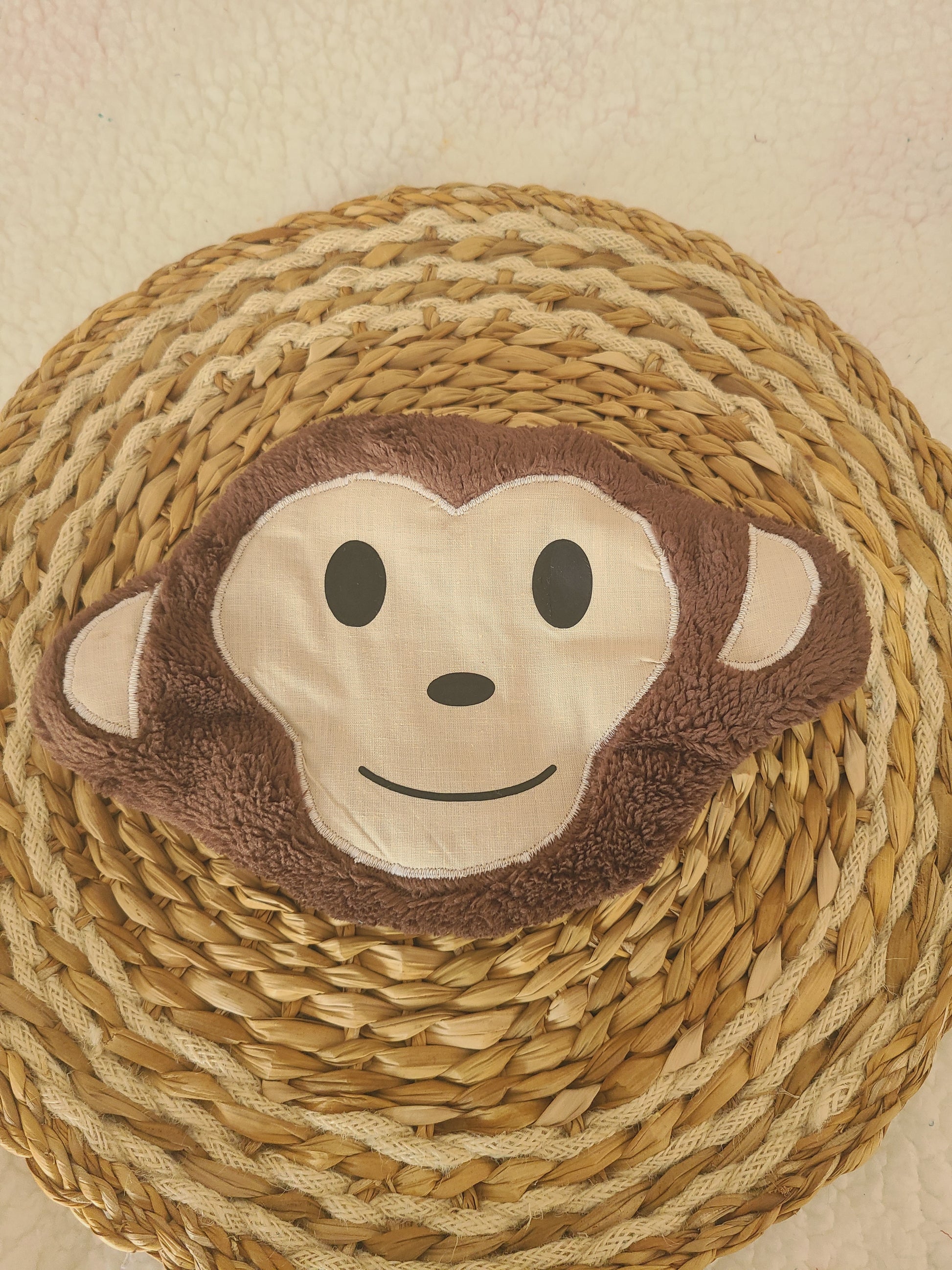 Bouillotte sèche déhoussable aux graines de lin bio en forme de tête de singe au choix.